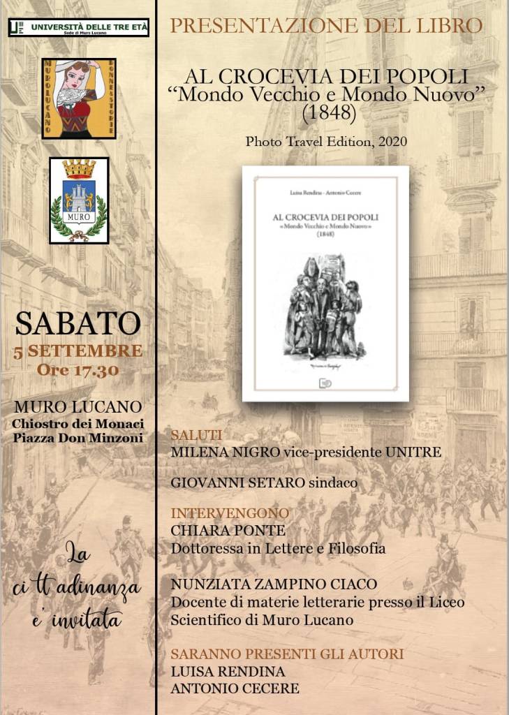 AL CROCEVIA DEI POPOLI “MONDO VECCHIO E MONDO NUOVO” (1848) – MURO LUCANO (PZ) 05.09.2020 ore 17,30